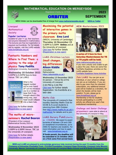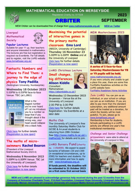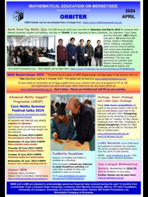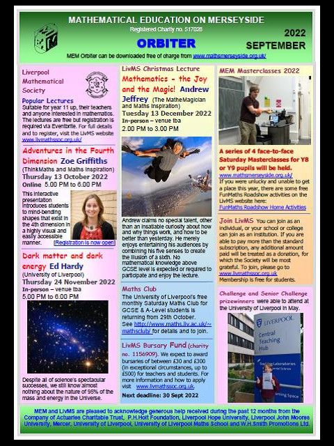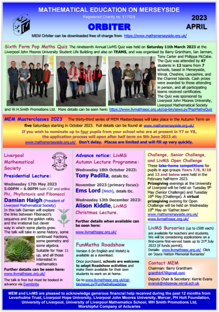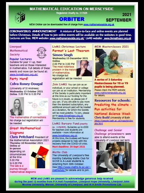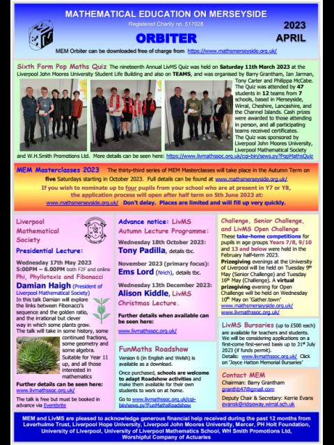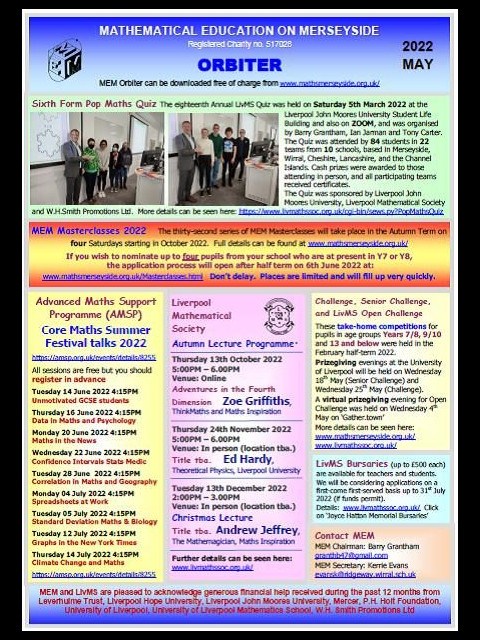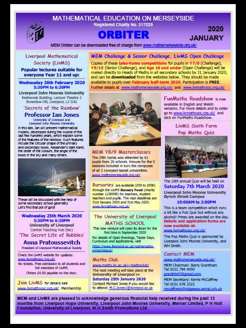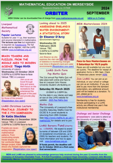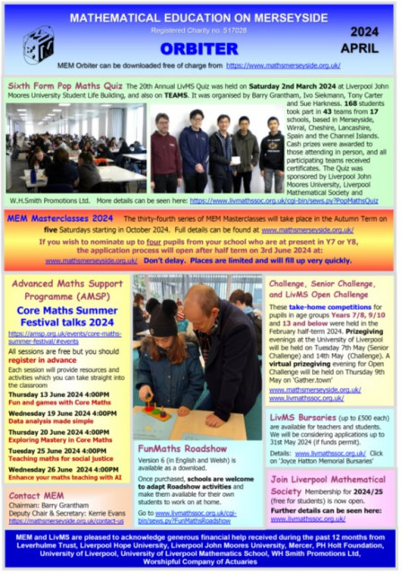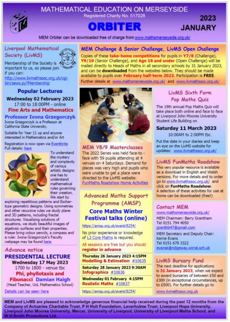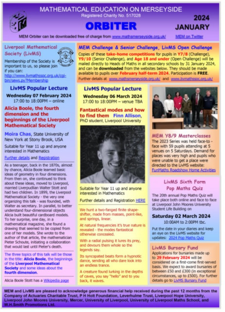 The MEM Orbiter is our newsletter, published in January, April and September each year